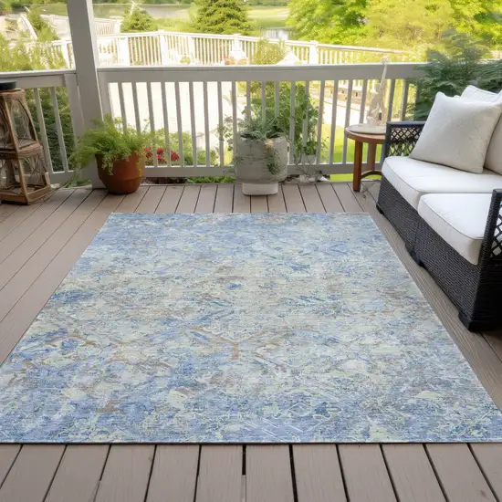 Add some artistry to your room with this 5-foot x 8-foot sky blue and denim blue geometric washable indoor outdoor area rug. This rectangle shaped rug features a geometric design that will work well both indoors or out. A classic shape marries with good looking design for your living room, hall, bedroom, porch, patio, or poolside. Ideal for outdoor spaces or high traffic areas with kids and pets, this rug is made from heavy duty polyester that is stain resistant to help repel water, dirt, and stains. Makes a great way to dress up your patio, porch, or poolside, but also works well as a durable and easy to maintain option in the kitchen, family room, or mudroom. 60-inch h x 90-inch w x 0.19-inch d.