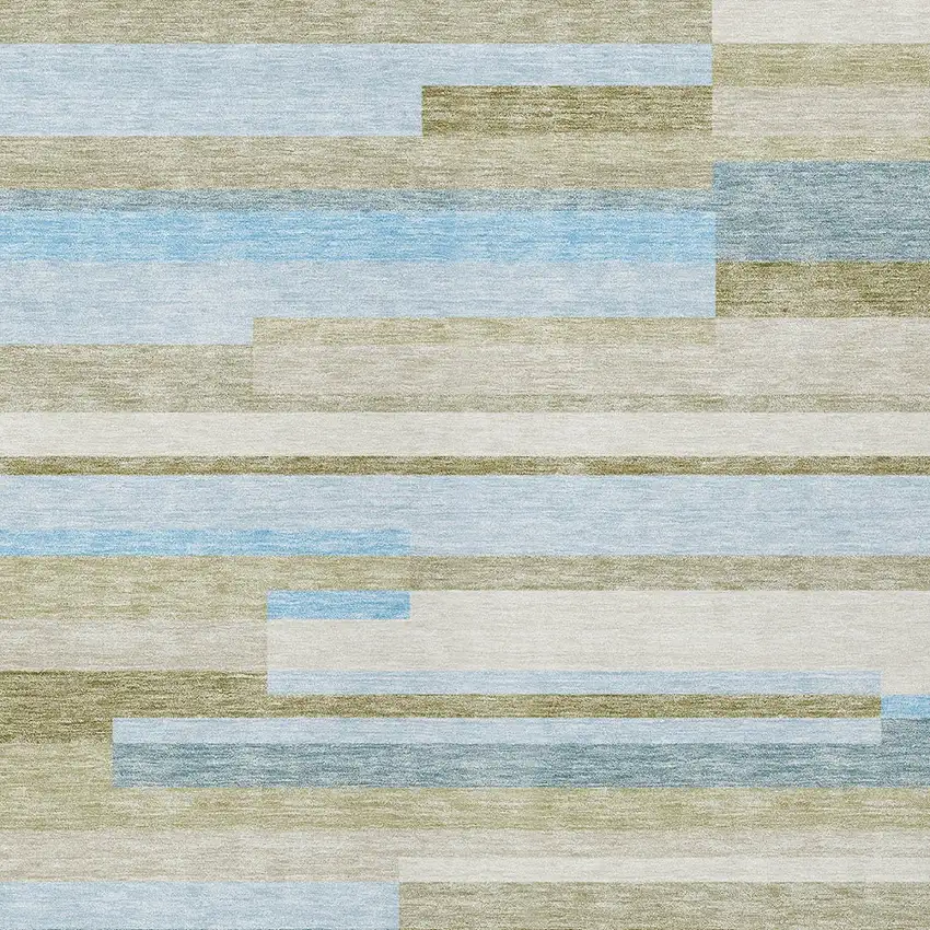 Sky Blue And Denim Blue Striped Washable Indoor Outdoor Area Rug