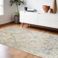 Sky Blue And Gray Floral Washable Area Rug With UV Protection