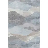 Sky Blue And Ivory Abstract Geometric Washable Area Rug With UV Protection