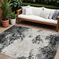 Sky Blue And Ivory Abstract Washable Indoor Outdoor Area Rug