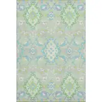 Sky Blue And Ivory Floral Washable Area Rug With UV Protection