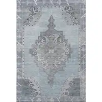 Sky Blue And Ivory Geometric Washable Area Rug With UV Protection