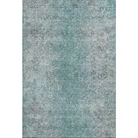 Sky Blue And Ivory Oriental Washable Area Rug With UV Protection
