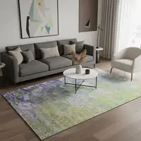 Sky Blue And Ivory Patchwork Washable Area Rug With UV Protection