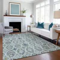 Sky Blue And Ivory Seashell Washable Indoor Outdoor Area Rug