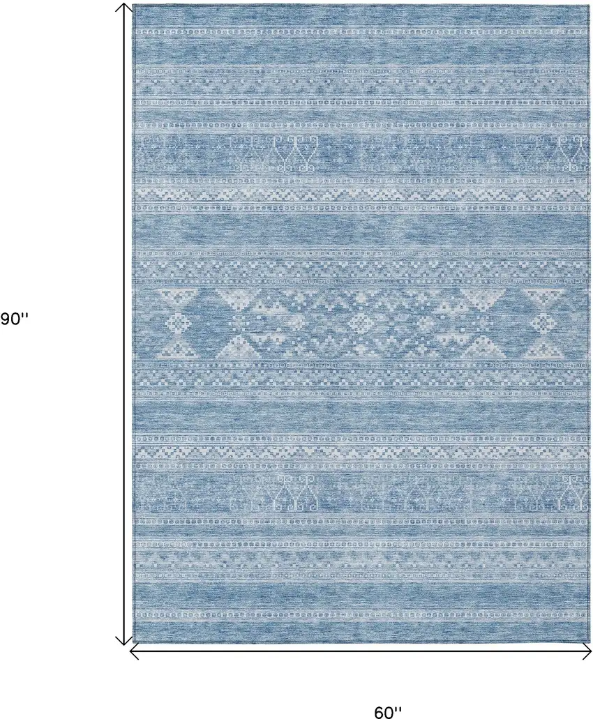 Set an inviting tone in your space with this 5-foot x 8-foot sky blue and ivory southwestern washable indoor outdoor area rug. This rectangle shaped rug features a southwestern design that will work well both indoors or out. A classic shape marries with good looking design for your living room, hall, bedroom, porch, patio, or poolside. Ideal for outdoor spaces or high traffic areas with kids and pets, this rug is made from heavy duty polyester that is stain resistant to help repel water, dirt, and stains. Makes a great way to dress up your patio, porch, or poolside, but also works well as a durable and easy to maintain option in the kitchen, family room, or mudroom. 60-inch h x 90-inch w x 0.19-inch d.