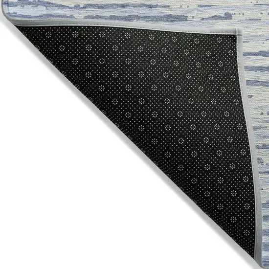 Sky Blue And Ivory Striped Washable Indoor Outdoor Area Rug