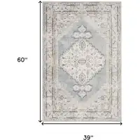 Sky Blue And Ivory Tribal Washable Area Rug With UV Protection