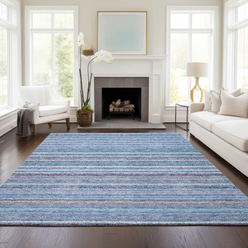 Add great coloration and comfortable texture to your space with this 10-foot x 14-foot sky blue and navy blue striped washable indoor outdoor area rug. This rectangle shaped rug features a striped design that will work well both indoors or out. A classic shape marries with good looking design for your living room, hall, bedroom, porch, patio, or poolside. Ideal for outdoor spaces or high traffic areas with kids and pets, this rug is made from heavy duty polyester that is stain resistant to help repel water, dirt, and stains. Versatile in use, durable, and easy to maintain, this rug is an ideal solution to add a decorative and inviting touch to your indoor or outdoor space. 120-inch h x 168-inch w x 0.19-inch d.