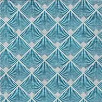 Sky Blue And Taupe Floral Washable Indoor Outdoor Area Rug