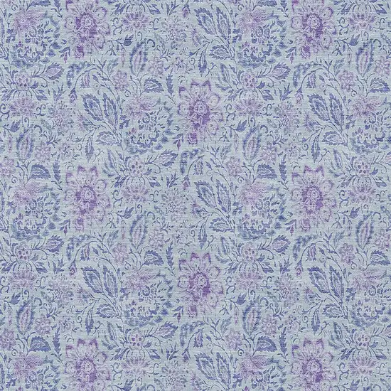 Sky Blue Blue And Purple Floral Washable Indoor Outdoor Area Rug
