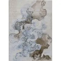 Sky Blue Brown And Beige Geometric Washable Indoor Outdoor Area Rug