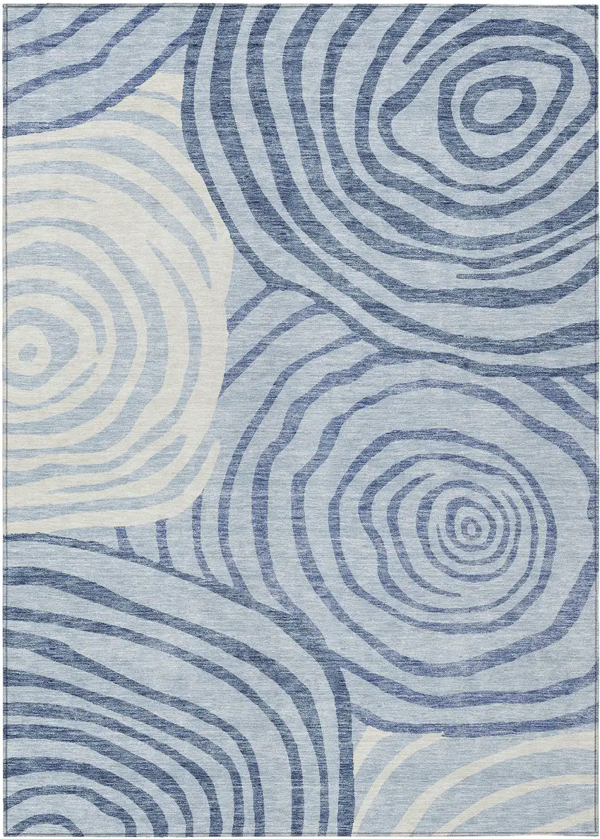Sky Blue Denim Blue And Ivory Abstract Washable Indoor Outdoor Area Rug