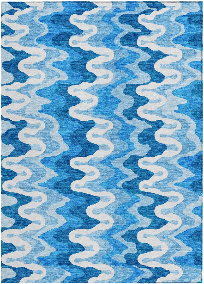 Set an inviting tone in your space with this 8-foot x 10-foot sky blue denim blue and ivory abstract washable indoor outdoor area rug. This rectangle shaped rug features a abstract design that will work well both indoors or out. A classic shape marries with good looking design for your living room, hall, bedroom, porch, patio, or poolside. Ideal for outdoor spaces or high traffic areas with kids and pets, this rug is made from heavy duty polyester that is stain resistant to help repel water, dirt, and stains. Makes a great way to dress up your patio, porch, or poolside, but also works well as a durable and easy to maintain option in the kitchen, family room, or mudroom. 96-inch h x 120-inch w x 0.19-inch d.