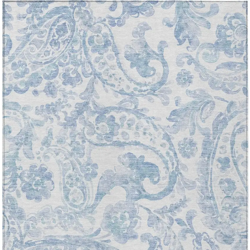Set an inviting tone in your space with this 9-foot x 12-foot sky blue denim blue and ivory paisley washable indoor outdoor area rug. This rectangle shaped rug features a paisley design that will work well both indoors or out. A classic shape marries with good looking design for your living room, hall, bedroom, porch, patio, or poolside. Ideal for outdoor spaces or high traffic areas with kids and pets, this rug is made from heavy duty polyester that is stain resistant to help repel water, dirt, and stains. Makes a great way to dress up your patio, porch, or poolside, but also works well as a durable and easy to maintain option in the kitchen, family room, or mudroom. 108-inch h x 144-inch w x 0.19-inch d.