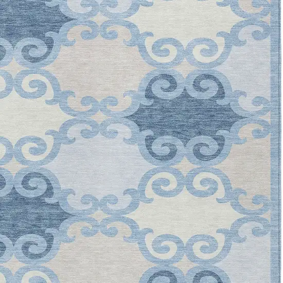 Add some artistry to your room with this 9-foot x 12-foot sky blue gray and ivory trellis washable indoor outdoor area rug. This rectangle shaped rug features a trellis design that will work well both indoors or out. A classic shape marries with good looking design for your living room, hall, bedroom, porch, patio, or poolside. Ideal for outdoor spaces or high traffic areas with kids and pets, this rug is made from heavy duty polyester that is stain resistant to help repel water, dirt, and stains. Makes a great way to dress up your patio, porch, or poolside, but also works well as a durable and easy to maintain option in the kitchen, family room, or mudroom. 108-inch h x 144-inch w x 0.19-inch d.