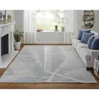 Sky Blue Gray And Silver Abstract Washable Area Rug With UV Protection