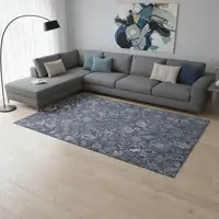 Sky Blue Gray And Silver Abstract Washable Area Rug With UV Protection