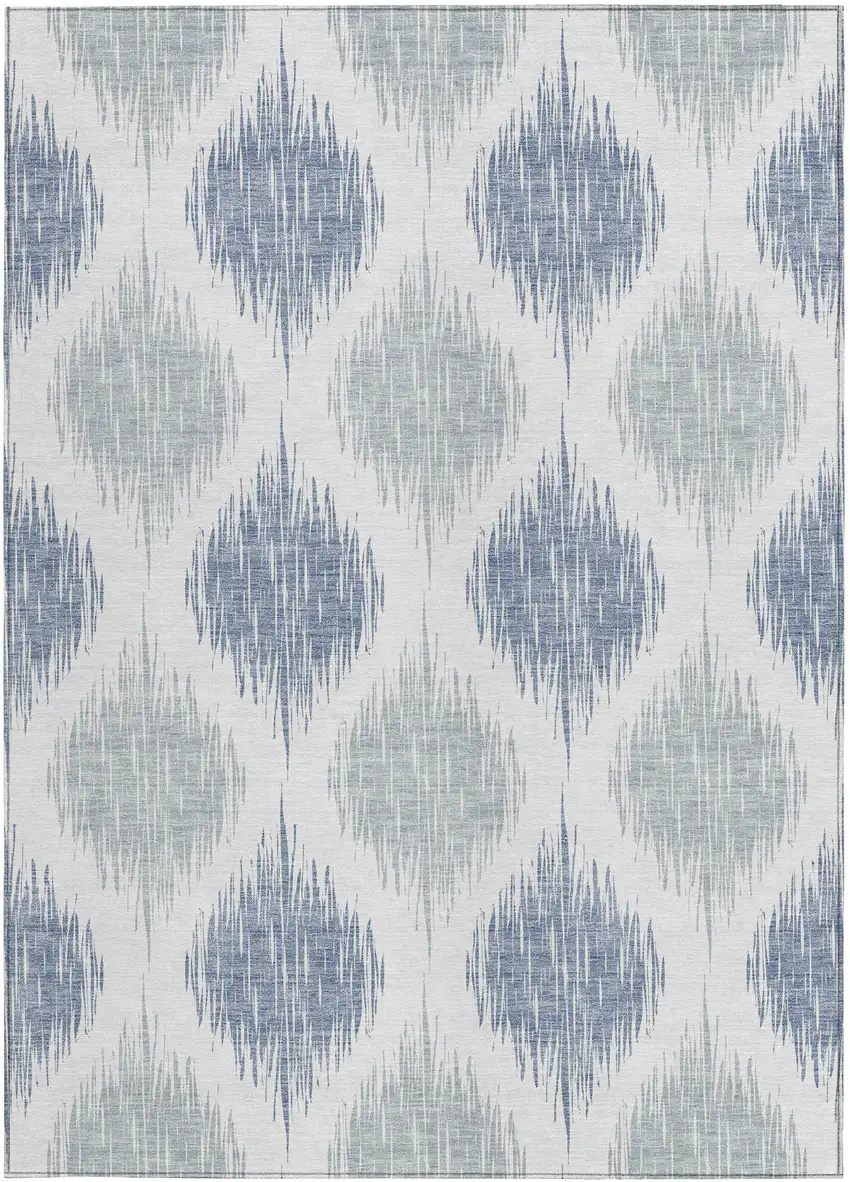 Add great coloration and comfortable texture to your space with this 10-foot x 14-foot sky blue ivory and denim blue ikat washable indoor outdoor area rug. This rectangle shaped rug features a ikat design that will work well both indoors or out. A classic shape marries with good looking design for your living room, hall, bedroom, porch, patio, or poolside. Ideal for outdoor spaces or high traffic areas with kids and pets, this rug is made from heavy duty polyester that is stain resistant to help repel water, dirt, and stains. Versatile in use, durable, and easy to maintain, this rug is an ideal solution to add a decorative and inviting touch to your indoor or outdoor space. 120-inch h x 168-inch w x 0.19-inch d.