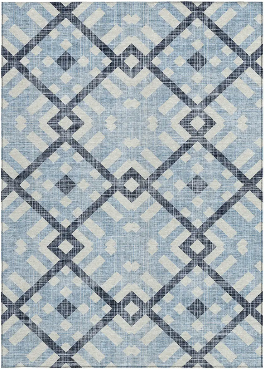 Add great coloration and comfortable texture to your space with this 8-foot x 10-foot sky blue navy blue and ivory geometric washable indoor outdoor area rug. This rectangle shaped rug features a geometric design that will work well both indoors or out. A classic shape marries with good looking design for your living room, hall, bedroom, porch, patio, or poolside. Ideal for outdoor spaces or high traffic areas with kids and pets, this rug is made from heavy duty polyester that is stain resistant to help repel water, dirt, and stains. Versatile in use, durable, and easy to maintain, this rug is an ideal solution to add a decorative and inviting touch to your indoor or outdoor space. 96-inch h x 120-inch w x 0.19-inch d.
