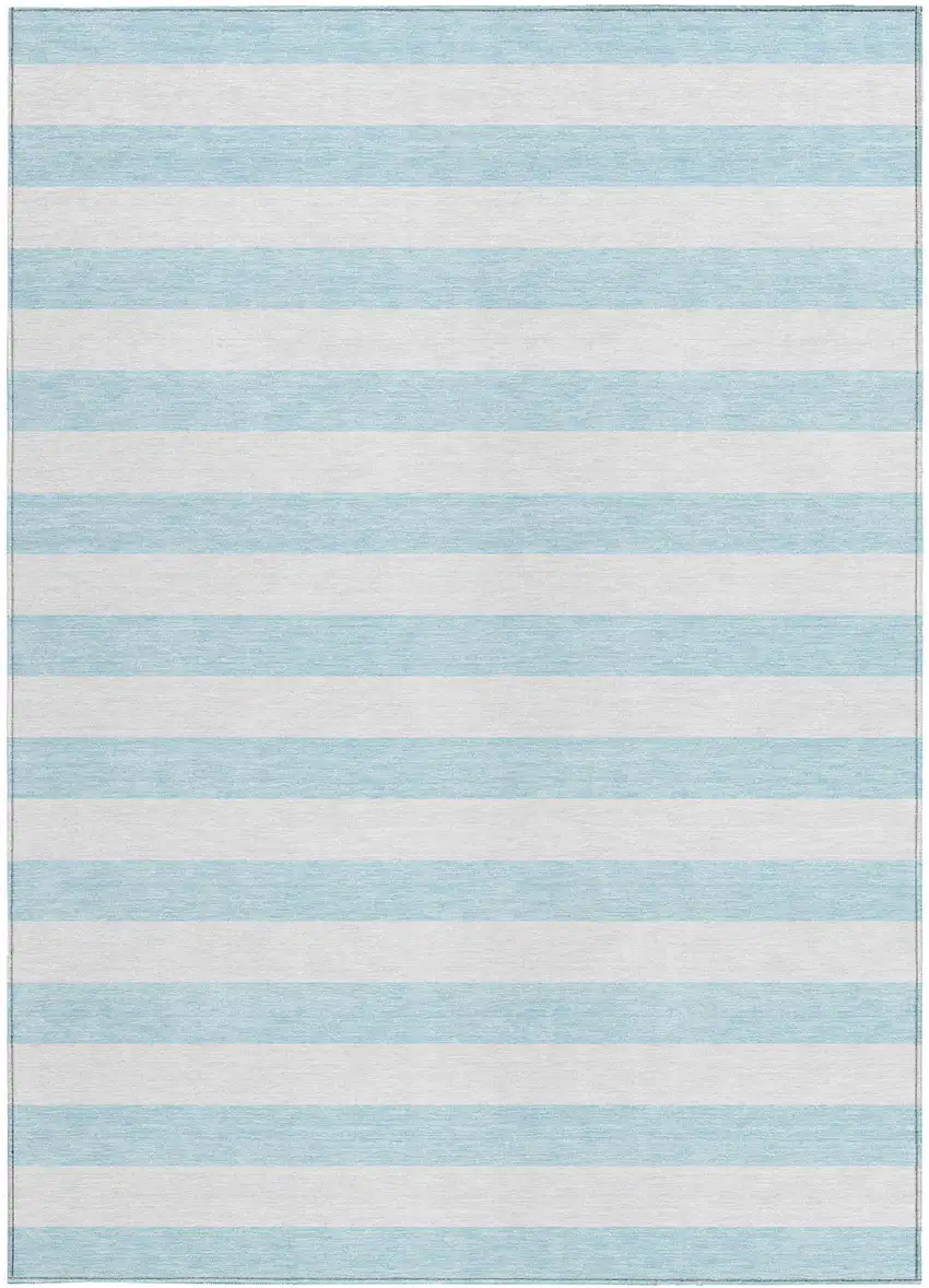 Sky Blue Striped Washable Non Skid Indoor Outdoor Area Rug