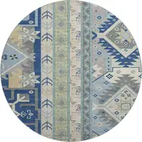 Sky Blue Teal And Blush Geometric Washable Area Rug With UV Protection