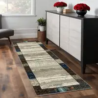 A slate-grey runner rug provides a chic, stylish flair to your corridors or entryways. Beautifully vintage and machine-crafted, it adds a splash of uniqueness to your comfortable indoor spaces.