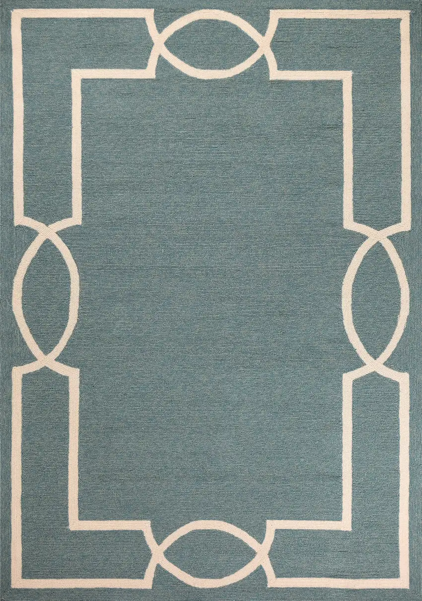 Spa Blue Hand Hooked UV Treated Bordered Indoor Outdoor Area Rug