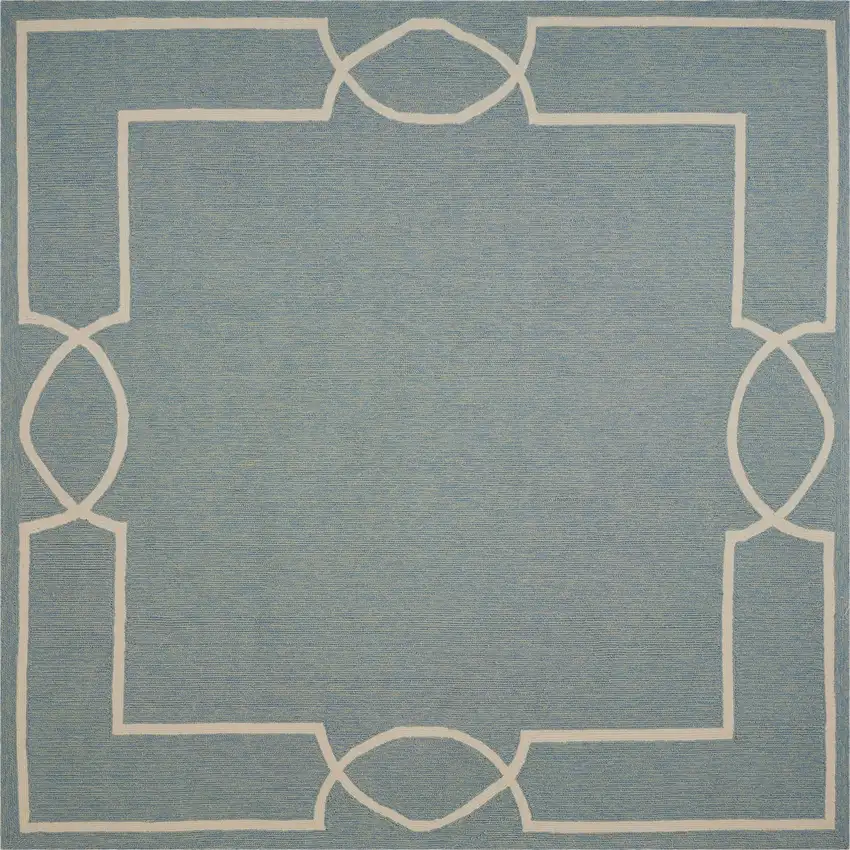 Spa Blue Hand Hooked UV Treated Bordered Indoor Outdoor Area Rug