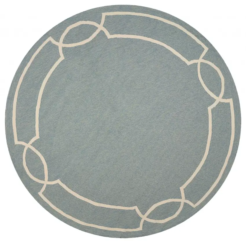 Spa Blue Hand Hooked UV Treated Bordered Round Indoor Outdoor Area Rug