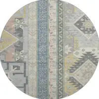 Tan And Beige Striped Washable Area Rug With UV Protection