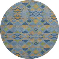 Tan And Blue Wool Abstract Tufted Handmade Stain Resistant Area Rug