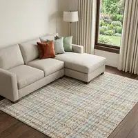 Tan and Blue Wool Geometric Area Rug