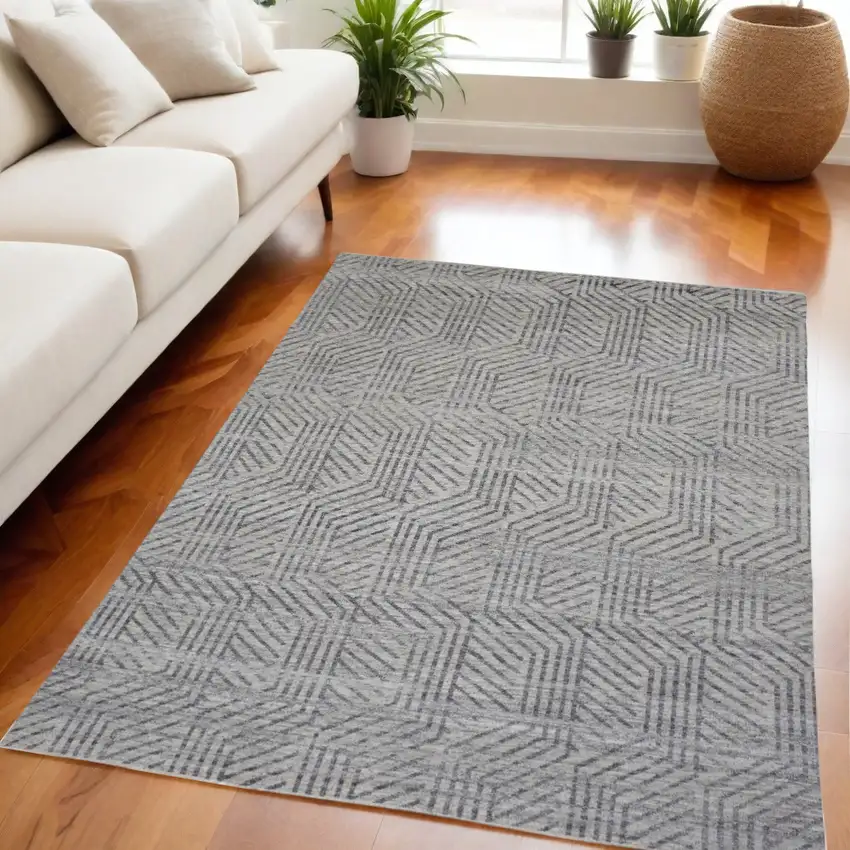 Tan and Gray Wool Geometric Hand Knotted Area Rug