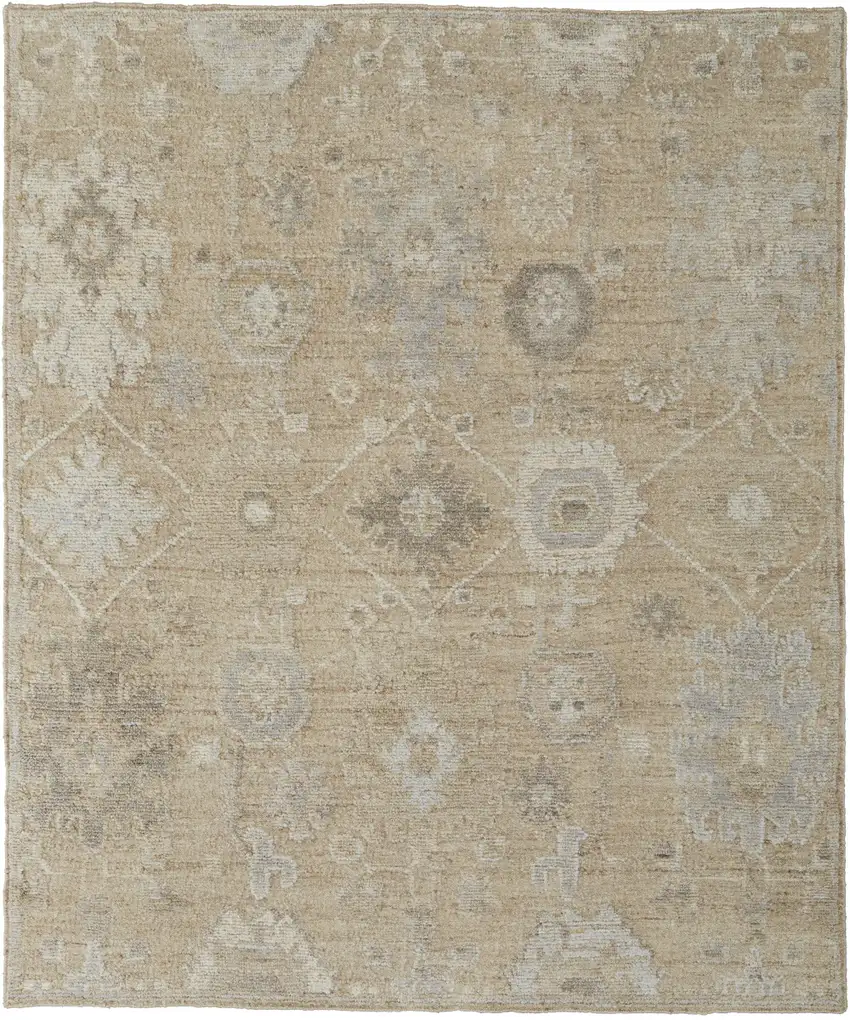 Tan and Ivory Wool Floral Hand Knotted Area Rug