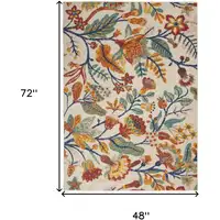 Tan Blue and Green Striped Hand Knotted Area Rug