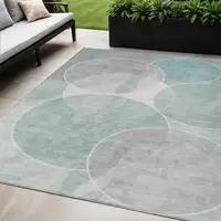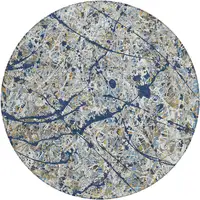 Tan Blue And Mauve Abstract Washable Indoor Outdoor Area Rug
