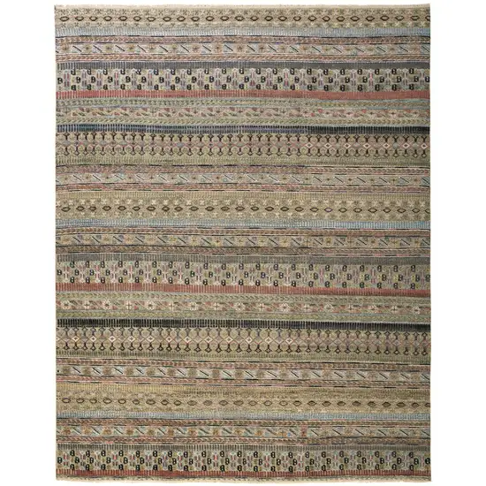 Tan Blue and Orange Striped Hand Knotted Area Rug