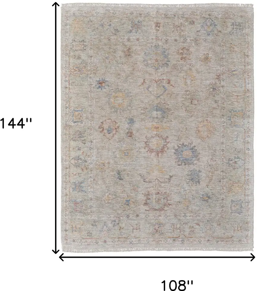 This 9-foot x 12-foot tan brown and blue floral hand woven distressed area rug with fringe, is a great way to add warmth to a room. This rectangle shaped rug features a floral design in tan brown and blue to give it visual interest. A classic shape marries with good looking design for your space tassel ends bring a timeless and fashionable look to your interior. Crafted by skilled artisans, this hand woven rug is genuine and unique. No two will be exactly alike. 108-inch H x 144-inch W x 0.4-inch D