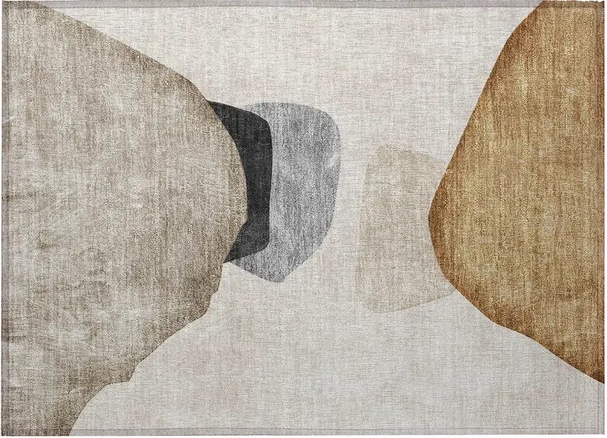 Tan Brown and Gray Abstract Washable Non Skid Indoor Outdoor Area Rug