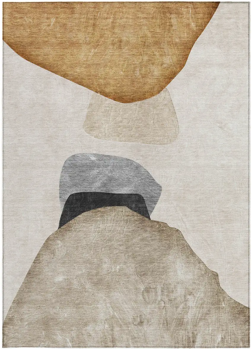 Tan Brown and Gray Abstract Washable Non Skid Indoor Outdoor Area Rug