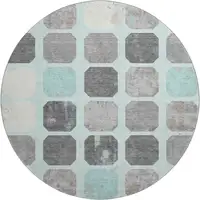 Add a touch of modern sophistication to your home with this delicately distressed area rug. The mixture of tan, ivory, and blue geometric patterns creates a unique, eye-catching element.