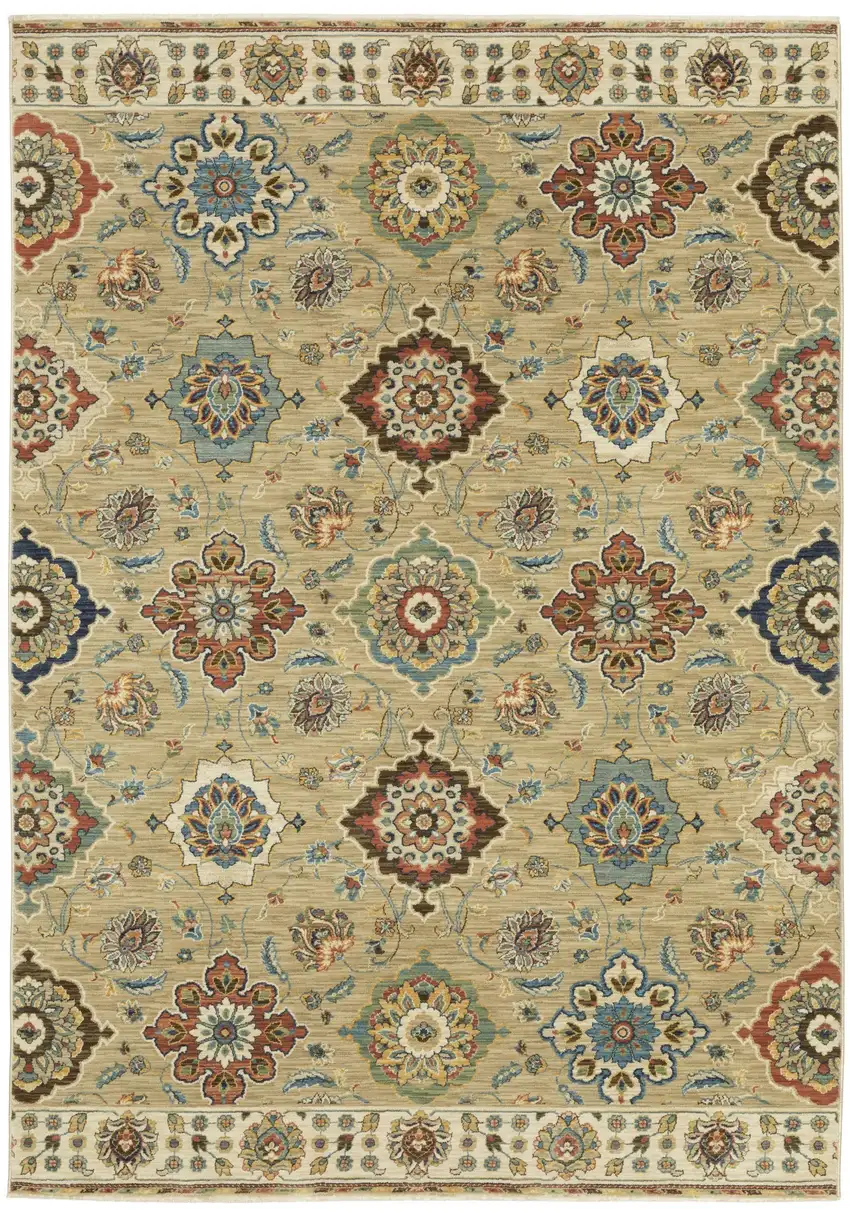 Tan Ivory And Brown Floral Area Rug With Fringe