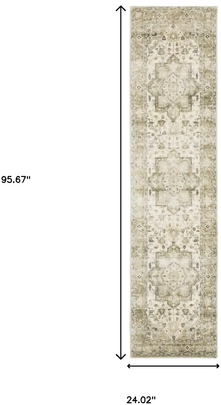 Tan Ivory Grey And Beige Oriental Power Loom Stain Resistant Runner Rug