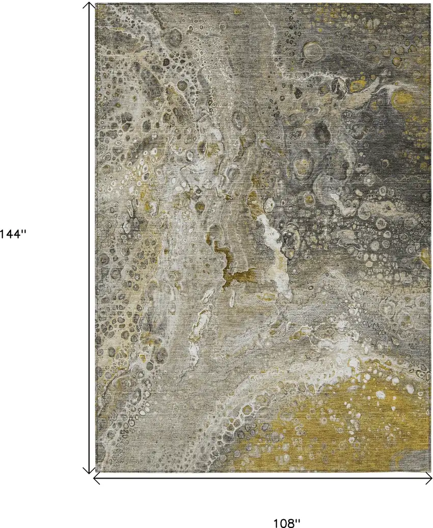 This 9-foot x 12-foot taupe abstract washable non skid indoor outdoor area rug, is a great way to add warmth to a room. This rectangle shaped rug features a abstract design that will work well both indoors or out. A classic shape marries with good looking design for your living room, hall, bedroom, porch, patio, or poolside. Ideal for outdoor spaces or high traffic areas with kids and pets, this rug is made from heavy duty polyester that is stain resistant to help repel water, dirt, and stains. Makes a great way to dress up your patio, porch, or poolside, but also works well as a durable and easy to maintain option in the kitchen, family room, or mudroom. 108-inch h x 144-inch w x 0.19-inch d