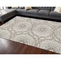 Taupe And Beige Abstract Geometric Washable Area Rug With UV Protection