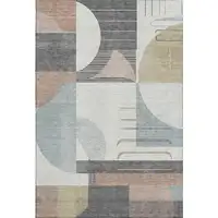 Taupe And Beige Geometric Washable Area Rug With UV Protection