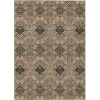 Taupe And Beige Geometric Washable Indoor Outdoor Area Rug