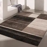 Taupe And Beige Striped Washable Area Rug With UV Protection